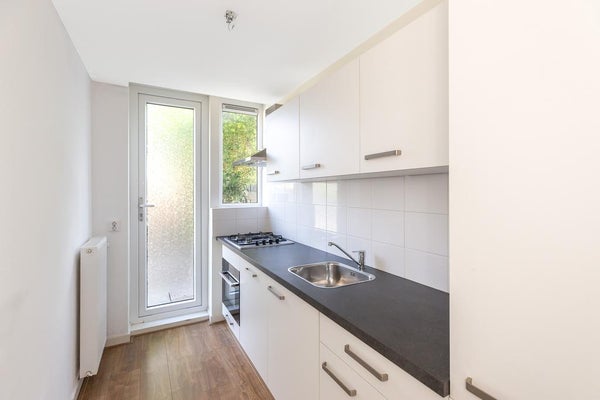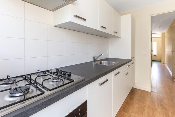 schouw/afzuigkap, oven, vaatwasautomaat, voldoende kastruimte en deur naar de achtertuin. - Slaapkamer aan de voorzijde voorzien van laminaatvloer en strakke wand- en plafondafwerking.