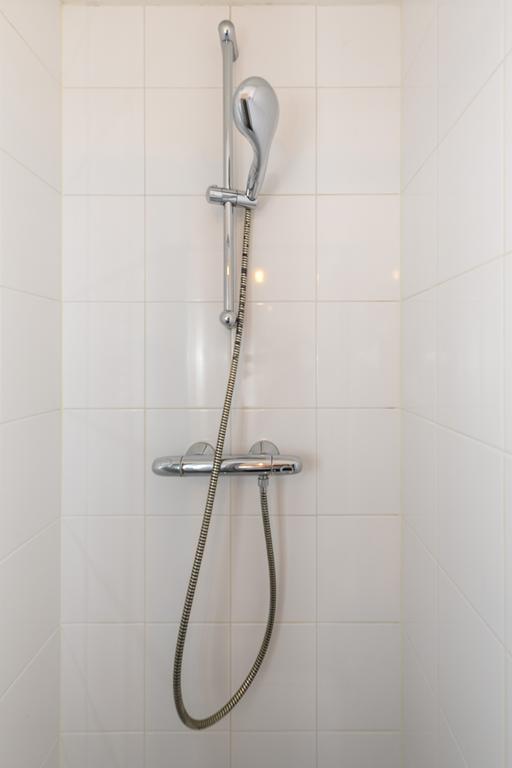 - Volledige betegelde badkamer met douche, wastafel en designradiator.