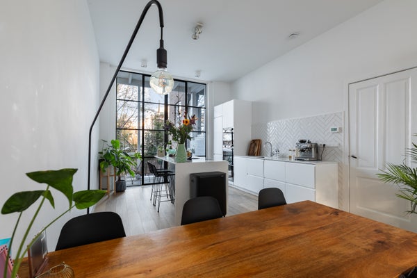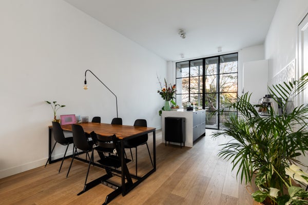 Dit bijzondere benedenhuis biedt een perfecte combinatie van karakter, comfort en een doordachte indeling. De woning is in 2019 volledig gerenoveerd, waarbij werkelijk alles is aangepakt: van een nieuwe fundering en modern leidingwerk tot luxe sanitair. De hoge plafonds, grote raampartijen en moderne stalen puien zorgen voor een fantastische lichtinval op zowel de begane grond als in het souterrain, wat elke ruimte een open en aangename sfeer geeft.