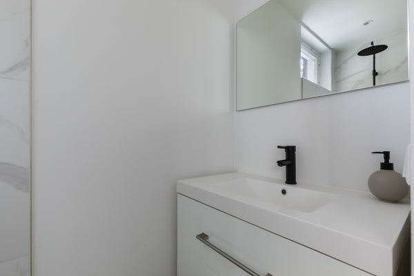 Het souterrain is verrassend ruim en praktisch ingedeeld met maar liefst vier royale slaapkamers en drie luxe badkamers. De master bedroom beschikt over een eigen badkamer met moderne, ruime inloopdouche en dubbele wastafel. Op de tussenverdieping bevindt zich een ruime slaapkamer met een eigen badkamer voorzien van douche en wastafel, en directe toegang tot de tuin. Daarnaast is er een aparte badkamer die in 2025 is vernieuwd en is uitgerust met een prachtig ligbad. Verder vind je hier een praktische wasruimte en bergruimte met aansluitingen voor wasmachine en droger, evenals een separaat toilet.