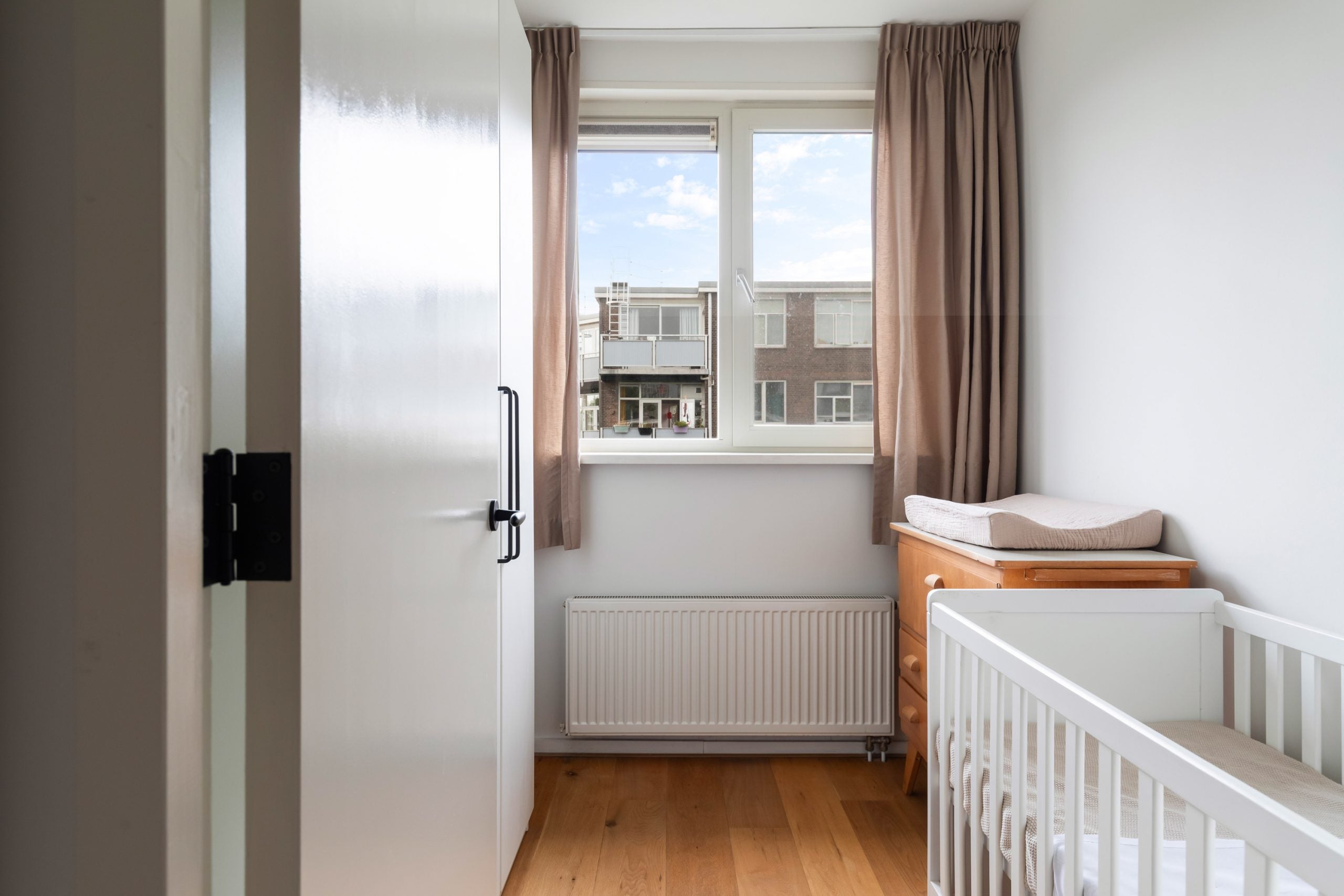 In de populaire wijk Blijdorp bevindt zich een lichte 3-kamer bovenwoning van 76 m2, compleet met een heerlijk balkon op het noordwesten. Het huis straalt rust uit, ondanks de centrale ligging dichtbij uitvalswegen, openbaar vervoer, winkels en restaurants. Bij binnenkomst via het afgesloten portiek bereik je de 3e verdieping. De ruime woonkamer, met een lengte van ongeveer 11 meter, laat veel natuurlijk licht binnenstromen door de grote ramen. De moderne half-open keuken, voorzien van inbouwapparatuur, heeft directe toegang tot het balkon. De master bedroom biedt een speels effect door de hoekligging, en de tweede slaapkamer is multifunctioneel in te richten. Bij de woning hoort een externe bergruimte van ongeveer 2 m2.