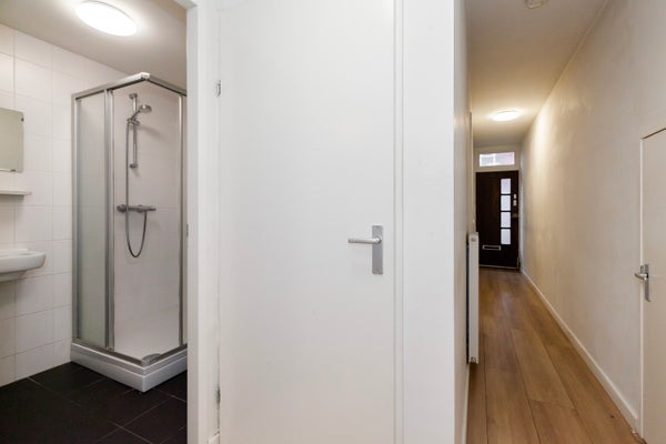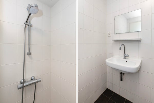 kastruimte; - Betegelde badkamer voorzien van douche , wastafel en een design radiator;