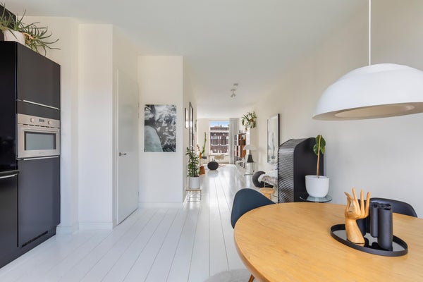 - De galerijflat heeft een woonoppervlakte van 112 m² en beschikt over 3 kamers, waarvan 2 slaapkamers;