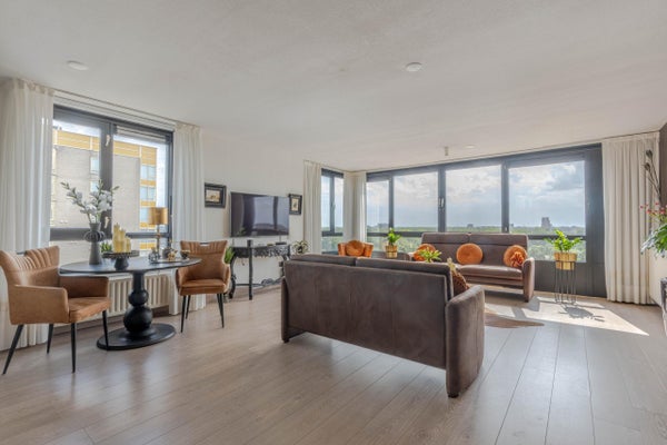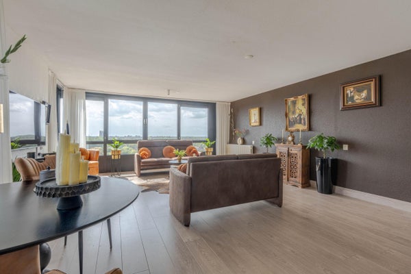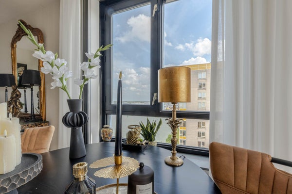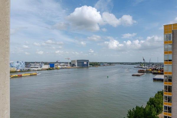 Op de 12e verdieping van een fraaie woontoren aan de Nieuwe Maas bevindt zich dit verzorgde 3-kamer appartement met prachtig uitzicht over de jachthaven en de rivier. Met een woonoppervlak van ca. 88 m² biedt het appartement ruimte aan een lichte woonkamer, een halfopen keuken met inbouwkeuken, en twee slaapkamers met parketvloer. De moderne badkamer is 5 jaar geleden luxueus verbouwd. Het appartement beschikt over veel raampartijen voor optimale lichtinval. Op de begane grond is een externe berging. De locatie biedt gratis parkeermogelijkheden en is nabij winkels, busverbindingen en uitvalswegen. Het appartement heeft energielabel A en is goed onderhouden, met centrale verwarming en dubbele beglazing.