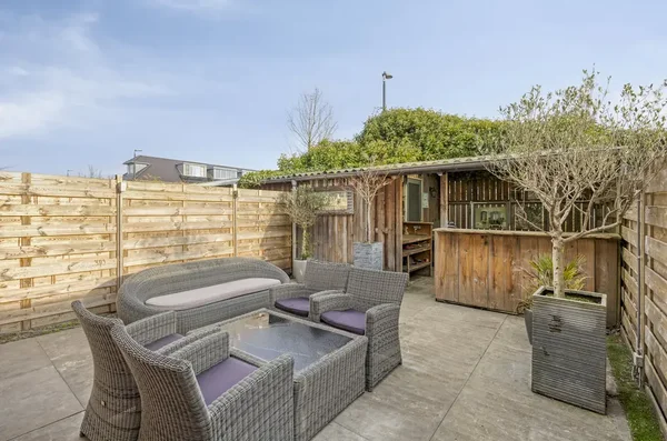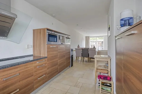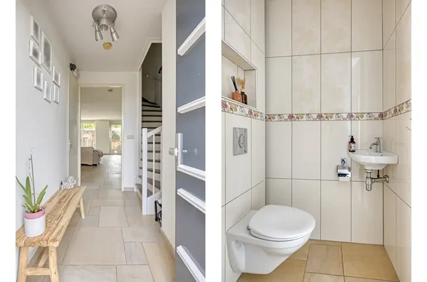 De indeling omvat op de begane grond een entree met toilet, een lichte woonkamer met vloerverwarming en een open L-vormige keuken. De keuken is van alle gemakken voorzien en biedt uitzicht op de straat. De zonnige achtertuin heeft een houten berging en overkapping. Op de eerste verdieping bevinden zich twee slaapkamers, een moderne badkamer met ligbad en accessoire naar het balkon. De tweede verdieping heeft nog eens twee slaapkamers en een aparte wasruimte.