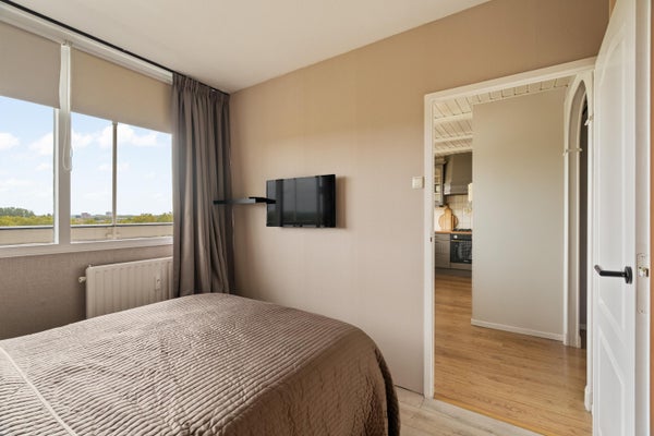 - De galerijflat heeft een woonoppervlakte van 85 m² en beschikt over 3 kamers, waarvan 2 slaapkamers;