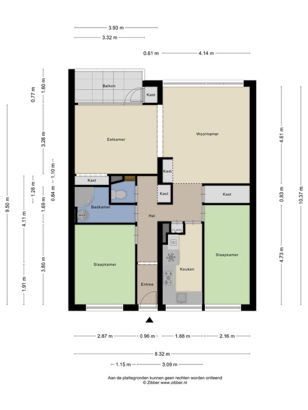 - De galerijflat heeft een woonoppervlakte van 82 m² en beschikt over 3 kamers, waarvan 2 slaapkamers;