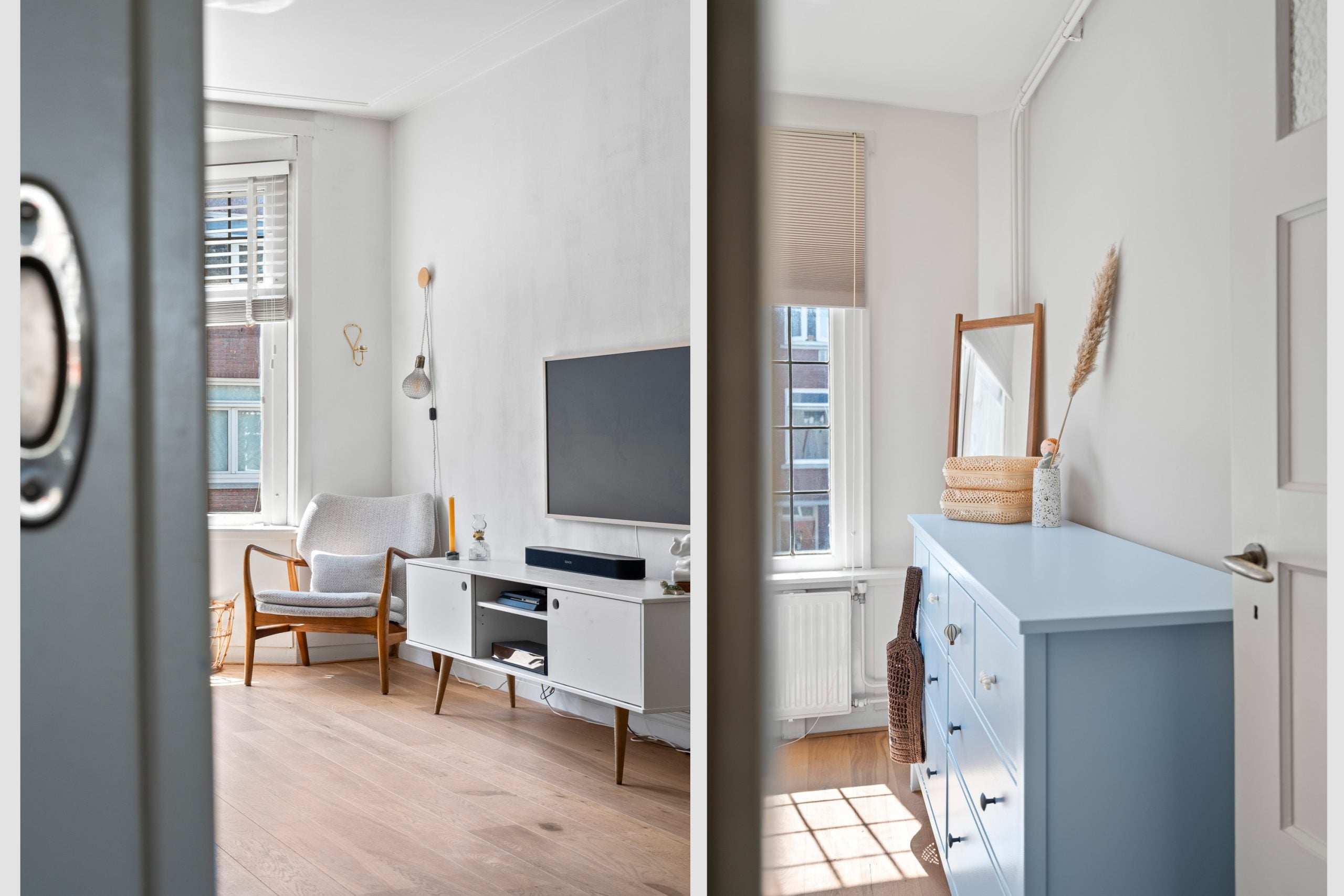 In het populaire Blijdorp vind je deze mooie 4-kamer bovenwoning van 85 m2, perfect instapklaar. De ruime ensuite woonkamer met open keuken biedt toegang tot een oostelijk balkon, waar je 's ochtends van de zon kunt genieten. Originele jaren '30 details zoals ornamenten en glas-in-lood geven de woning een authentieke sfeer. De eerste verdieping heeft een hal met een vernieuwd toilet en toegang tot de grote woonkamer van ca. 11 meter lang, en de open keuken is voorzien van Atag-apparatuur. De master bedroom aan de achterzijde heeft ruimte voor een tweepersoonsbed en een moderne badkamer, die in 2020 is gerenoveerd. Daarnaast is er een multifunctionele tweede slaapkamer en een aparte schuur voor fietsen of opslag. De woning beschikt over een sfeervolle houten parketvloer en ligt nabij het stadscentrum en uitvalswegen.