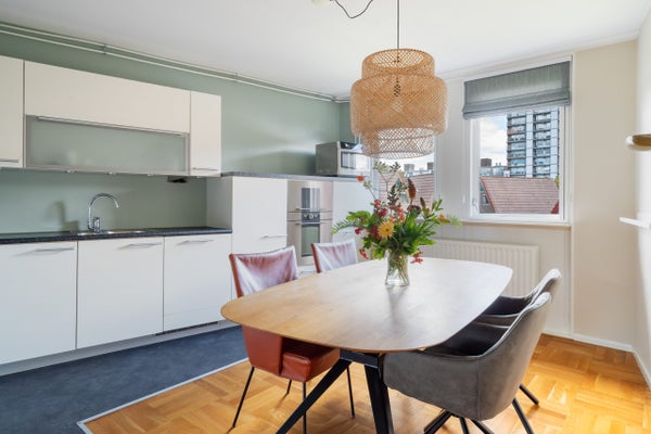 Dit sfeervolle 4-kamer appartement van 108 m2 is rustig gelegen, op loopafstand van het centrum van Rotterdam en op 5 minuten fietsen van het centraal station. Het appartement heeft een ruim woongedeelte met open keuken, 3 slaapkamers en een balkon op het zuidwesten. Het complex, ook wel bekend als Het Kabouterdorp, biedt groenvoorzieningen en een binnentuin met speeltoestellen. De indeling op de derde verdieping omvat een ruime hal met toegang tot de slaapkamers, waarvan de master bedroom aan de achterzijde is. De multifunctionele slaapkamers kunnen naar wens worden ingericht. De badkamer is uitgerust met een ligbad en wastafel. Op de vierde verdieping is de lichte woonkamer met een open keuken en moderne inbouwapparatuur. Een inpandige berging van 6m2 biedt extra opbergruimte. Het appartement is gebouwd in 1981, heeft energielabel C en een actieve Vereniging van Eigenaars.