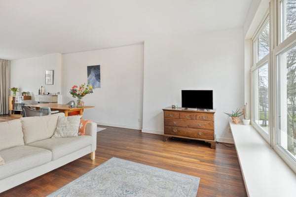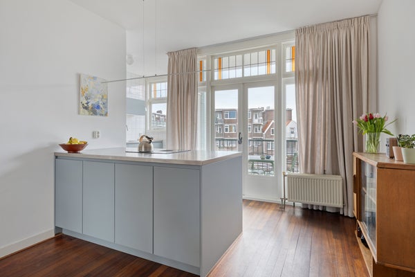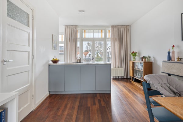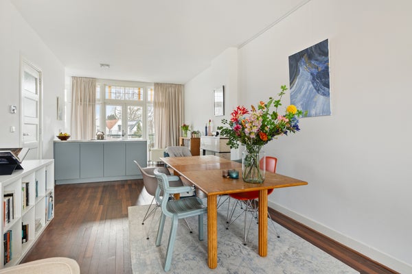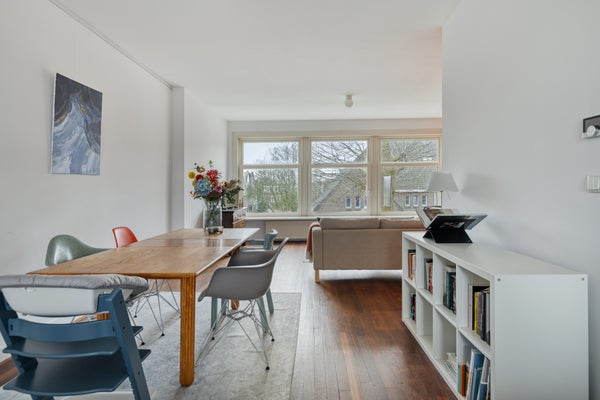 Het appartement, gelegen op de tweede en derde verdieping, is ruim, authentiek, sfeervol en heeft veel lichtinval. De woonoppervlakte van 104m² zit vol met charmante details uit de jaren 30.