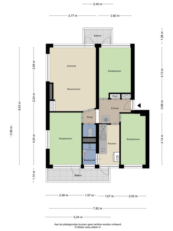 - De galerijflat heeft een woonoppervlakte van 67 m² en beschikt over 4 kamers, waarvan 3 slaapkamers;