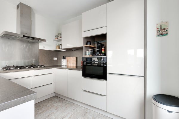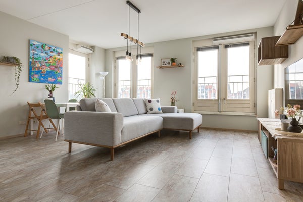 Hal/entree met meterkast. Ruime hal met toegang tot alle andere ruimtes van de woning. Toiletruimte v.v. hangend closet en fonteintje. Heerlijk ruime, sfeervolle woonkamer met Franse balkons en uitzicht over de haven. Moderne en ruime open keuken in U-opstelling. Naast veel bergruimte is de keuken v.v. spoelbak met mengkraan, gaskookplaat (4 pits + wokbrander), RVS-afzuigkap (2025), combi-oven (2025), koel-vriescombi (2025), vaatwasmachine (Siemens, 2024), ingebouwde koffienis en een praktische ontbijtbar. Vanwege de hoekligging van het appartement, tref je hier extra lichtinval. Vanuit de hal toegang tot de berging, aparte wasruimte met cv-opstelplaats en moderne badkamer (2022) v.v. inloopdouche, hangend closet, dubbele wastafel met hangend wandmeubel, verlichte spiegel, elektrische vloerverwarming en mechanische ventilatie. Tevens de drie ruime slaapkamers welke nu in gebruik zijn als ouderslaapkamer, kinderkamer en thuiskantoor. De woning is v.v. een fraaie laminaatvloer (m.u.v. de badkamer en toilet).