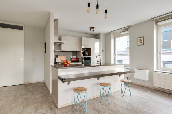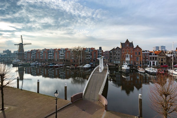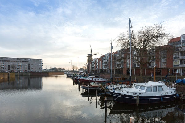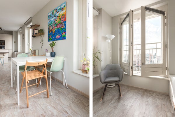 ''Our house has always felt like an oasis in the middle of a vibrant city. We have the best of both worlds: the charm and welcoming feeling of a small town, with the city centre just a step away by bike, tram, or metro. The views out of the living room are something that we will really miss: the canal with the swaying boats, the windmill; you can even see the cruise ships sailing up and down the Maas. It's a quiet and cozy neighbourhood, yet there is always something to do around here. We enjoy walking around the neighborhood, making a stop for coffee or lunch at one of the local cafes along the canal, or taking a walk to Het Park to enjoy some greenery. Living at the V.O.C.-Plein is something we will always look back on with fond memories and we hope that you, as next owners, will enjoy it just as much as we have.''