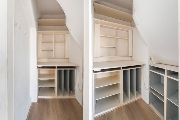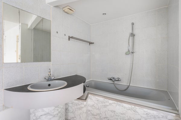 Op de bovenverdieping vind je twee slaapkamers, de grootste met een open badkamer en ligbad. De indeling laat ruimte voor extra mogelijkheden, zoals een werkplek of logeerkamer.