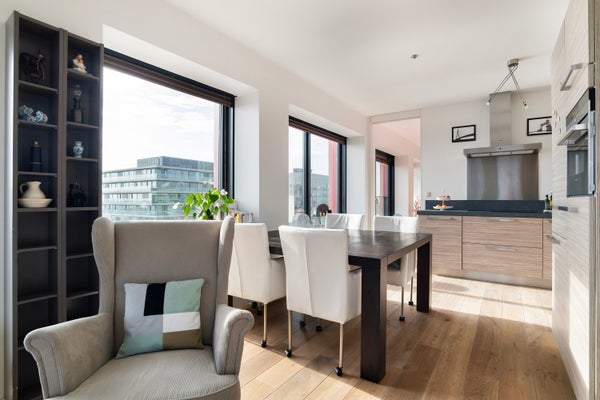- De bovenwoning heeft een woonoppervlakte van 104 m² en beschikt over 3 kamers, waarvan 2 slaapkamers;