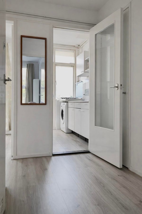 Via de verzorgde gemeenschappelijke entree en trappenhuis bereik je de 2e verdieping. In 2022 zijn het toilet, de badkamer en het plafond in de hal gerenoveerd, wat zorgt voor een frisse en moderne uitstraling. De lichte woonkamer biedt volop ruimte voor een comfortabele zit- en eethoek. De huidige indeling beschikt over drie slaapkamers, waarvan één eenvoudig bij de woonkamer kan worden getrokken voor een royale leefruimte.