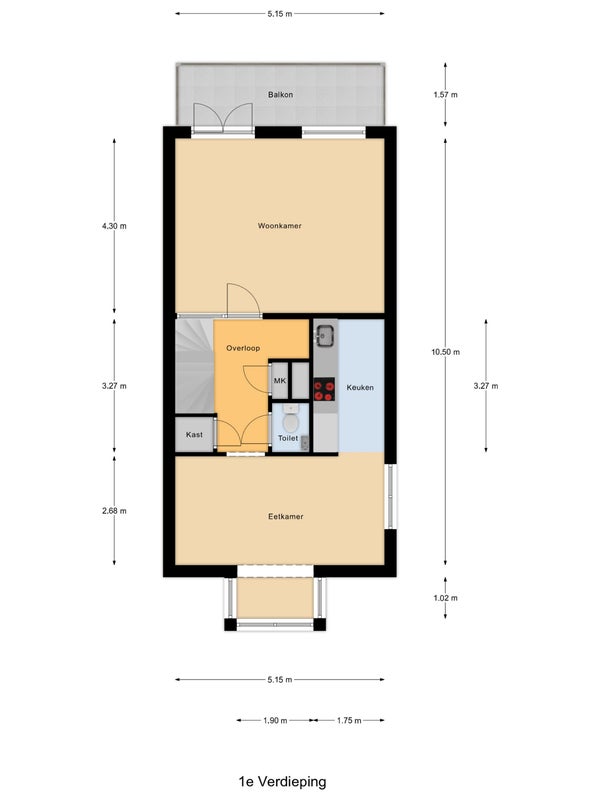 - De maisonnette heeft een woonoppervlakte van 111 m² en beschikt over 5 kamers, waarvan 3 slaapkamers;