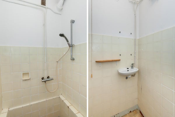 - Half betegelde badkamer welke is voorzien van een inloopdouche en wastafel;
