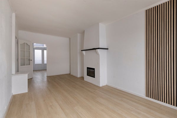 • De ruime en nette woonkamer met sierhaard beschikt over veel lichtinval door het grote raampartij;