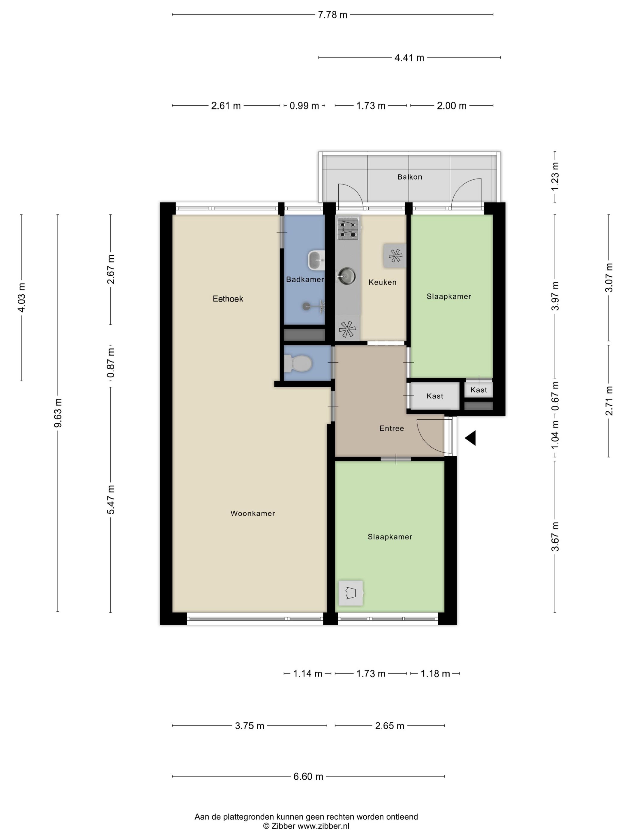 - De galerijflat heeft een woonoppervlakte van 69 m² en beschikt over 3 kamers, waarvan 2 slaapkamers;