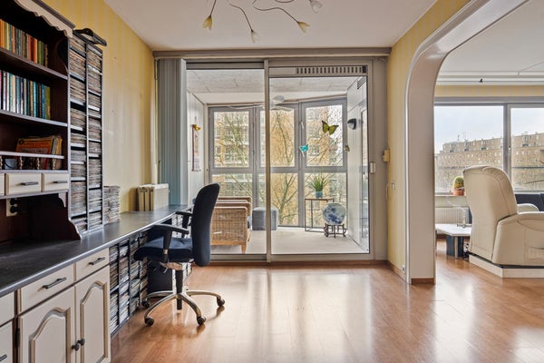 De lichte woonkamer vormt het hart van het appartement en geeft toegang tot een zonnig balkon – een fijne plek om even buiten te zitten en te genieten van alles wat de stad te bieden heeft. Daarnaast beschikt de woning momenteel over één ruime slaapkamer, welke voorheen was ingedeeld als twee comfortabele slaapkamers. Ideaal voor slapen, werken of logeren.