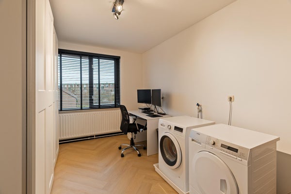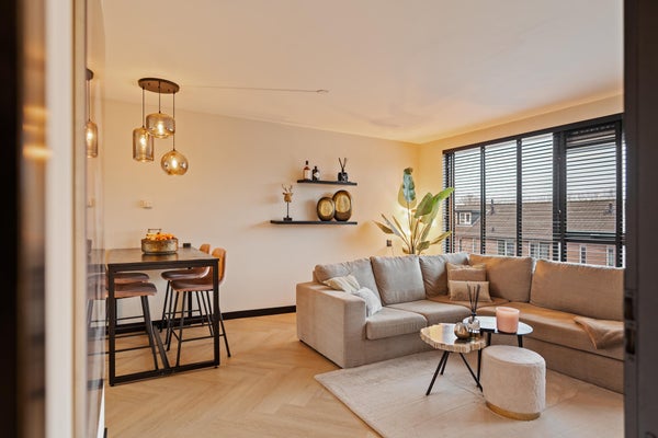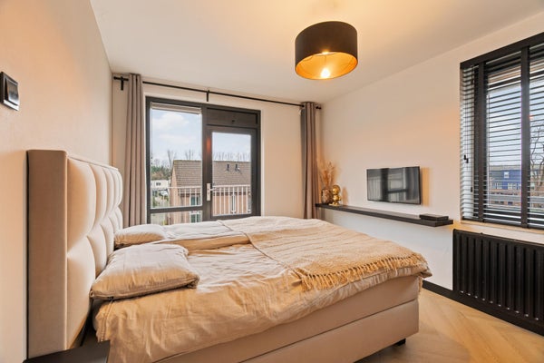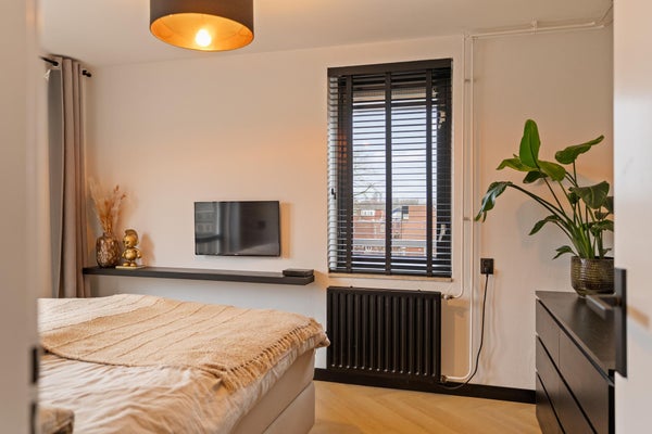 Dit prachtige 3-kamerappartement ligt op de bovenste verdieping van een klein appartementencomplex en is bereikbaar via een afgesloten entree. De woning, gebouwd in 1981 en volledig gerenoveerd, heeft een woonoppervlakte van ongeveer 67 m² en omvat een moderne, luxe keuken met inbouwapparatuur, een gezellige cinema wall in de woonkamer en een zonnig terras van circa 10 m² op het zuiden. Daarnaast zijn er twee slaapkamers, een badkamer met inloopdouche en wastafel, en een riante berging op de begane grond. Het appartement is gasloos, verwarmd en van warm water voorzien via stadsverwarming. Met energielabel B en gedeeltelijke stoffering biedt het appartement zowel comfort als privacy. VvE-bijdrage bedraagt € 122,- per maand en de erfpacht is afgekocht tot 03-02-2030.