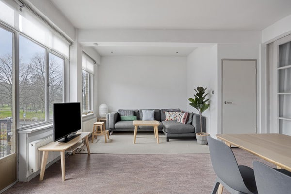 Wonen in een monumentaal appartementencomplex met uitzicht op de gemeenschappelijke siertuin richting Vroesenpark. Dit fraaie driekamerappartement met balkon en toegang tot de binnentuin bevindt zich in het historische pand "De Eendracht" in Blijdorp, gebouwd in 1934 in de Nieuwe Zakelijkheid stijl en geklasseerd als Rijksmonument. De woning beschikt in het souterrain over een eigen berging, ideaal voor het stallen van een motor. Met de rust van de wijk en het Vroesenpark op loopafstand, is het een perfecte locatie voor recreatie en sport. Het appartement omvat een hal, woonkamer, open keuken, royale slaapkamer, tweede slaapkamer, en een badkamer met douche en wastafel. Ook is er een actieve VvE met een maandelijkse bijdrage van €150.