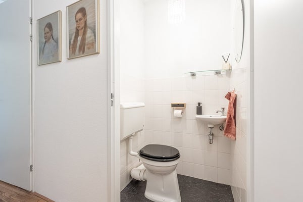 Via de galerij kom je binnen in de woning en stap je in de ruime hal. In de hal bevinden zich de meterkast, het separate toilet met fonteintje en toegang tot vrijwel alle vertrekken, wat zorgt voor een prettige en overzichtelijke indeling.