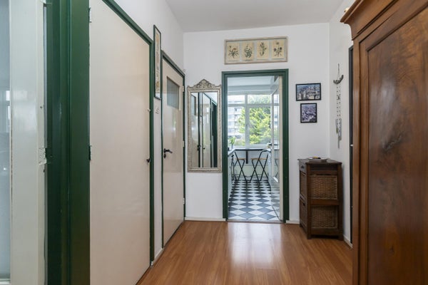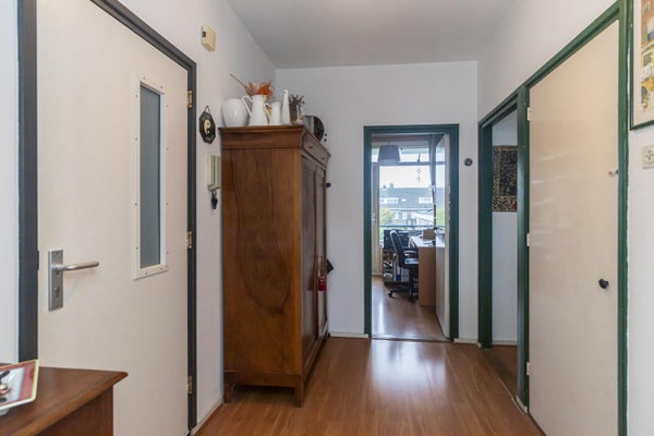 - De portiekflat heeft een woonoppervlakte van 63 m² en beschikt over 3 kamers, waarvan 2 slaapkamers;