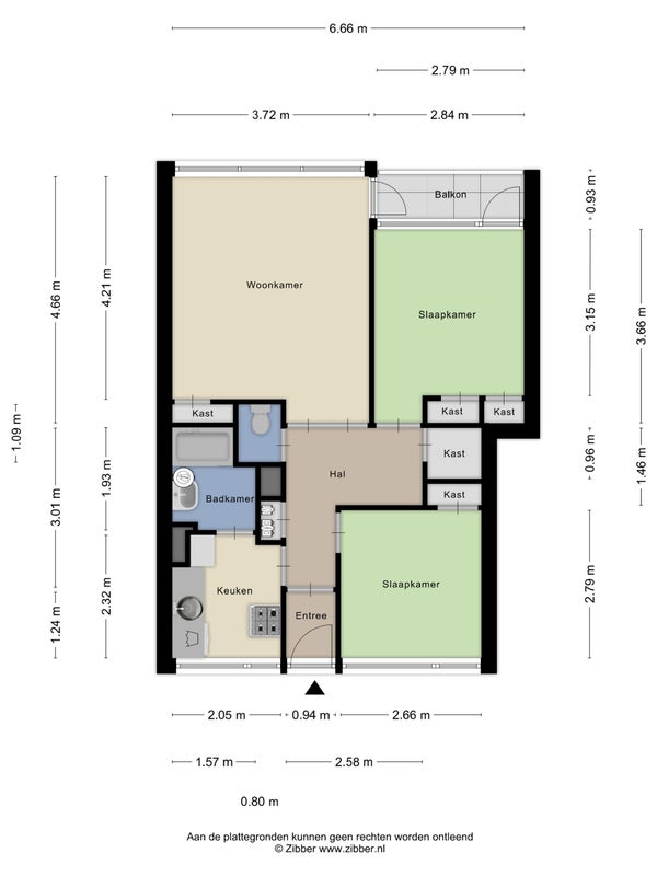 - De galerijflat heeft een woonoppervlakte van 54 m² en beschikt over 3 kamers, waarvan 2 slaapkamers;