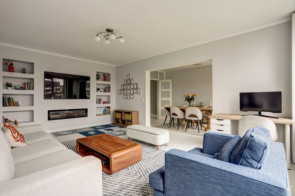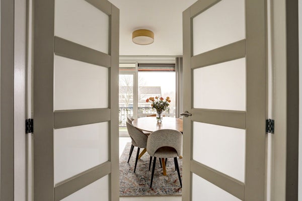 De woonkamer met eetkamer beschikken over grote raampartijen die zorgen voor een prachtig lichtinval en een ruimtelijk gevoel. De sfeervolle sierhaard vormt een mooi centraal element. Vanuit de eetkamer heeft u direct toegang tot het zonnige balkon op het zuidwesten, waar u dankzij de gunstige ligging en het aanwezige zonnescherm tot in de late uurtjes van de zon kunt genieten.