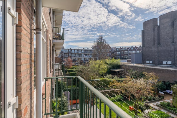 Dit appartement beschikt over een lichte woonkamer met originele suitekasten, een open keuken, twee slaapkamers, een balkon op het zuiden en een zeer ruime kelderberging in de onderbouw.