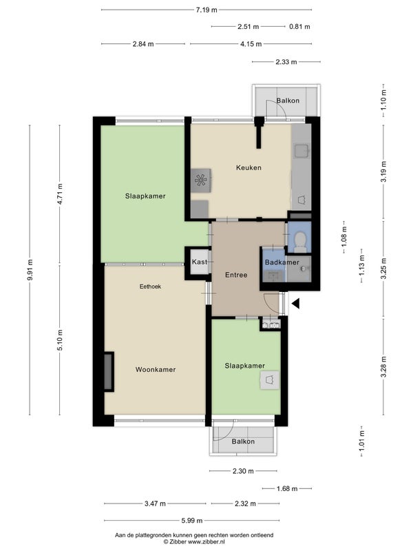 - De galerijflat heeft een woonoppervlakte van 66 m² en beschikt over 3 kamers, waarvan 2 slaapkamers;