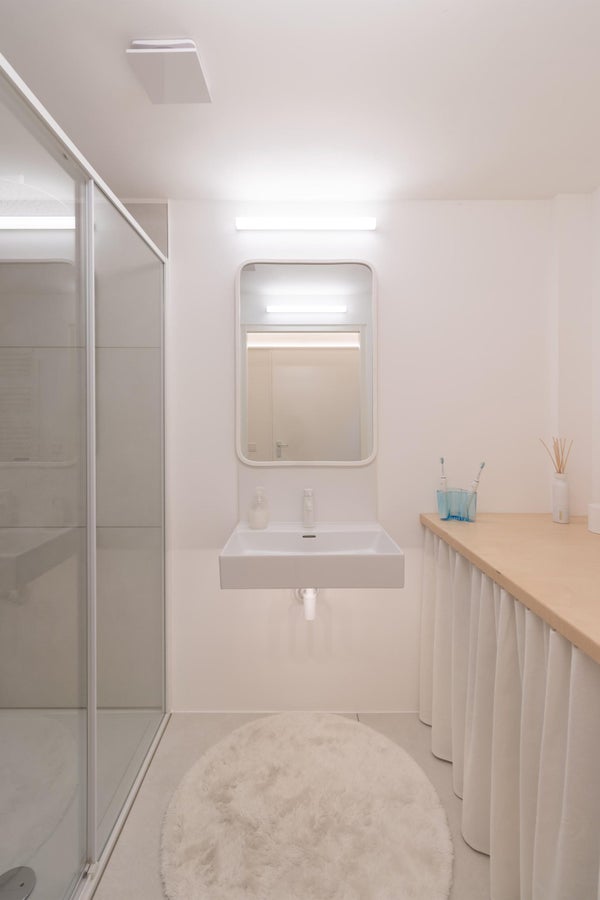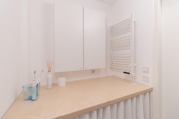 Indeling: Op de 2e verdieping vindt u de entree met toegang tot de slaapkamer, moderne badkamer en separaat toilet. Op de 3e verdieping bevindt zich de lichte woonkamer met open keuken, uitgerust met inbouwapparatuur. Het balkon is bereikbaar vanuit de woonkamer, waar u kunt genieten van de middagzon.