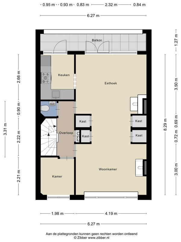 - De bovenwoning heeft een woonoppervlakte van 115 m² en beschikt over 6 kamers, waarvan 3 slaapkamers;