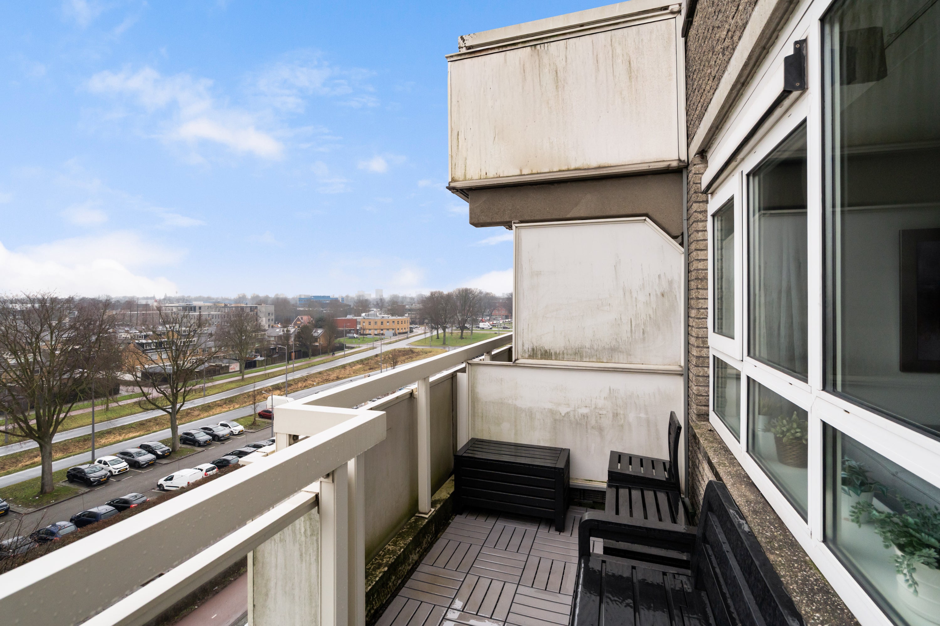 - De galerijflat heeft een woonoppervlakte van 71 m² en beschikt over 3 kamers, waarvan 2 slaapkamers;