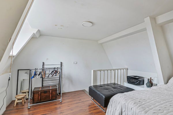 2e verdieping: Overloop, hal met toilet en meterkast, badkamer, slaapkamer, balkon. Ruime en sfeervolle woonkamer met open keuken. Vanuit de woonkamer is er toegang tot een slaapkamer aan de voorzijde..