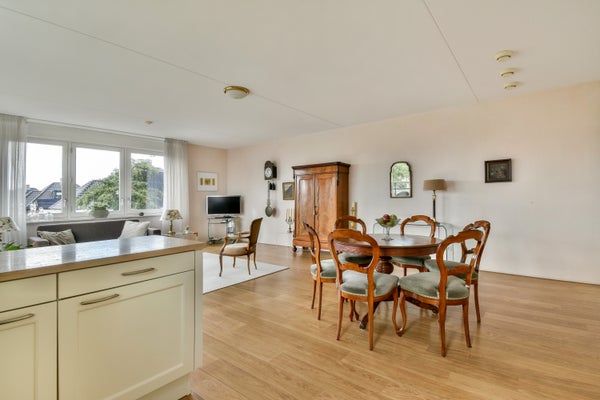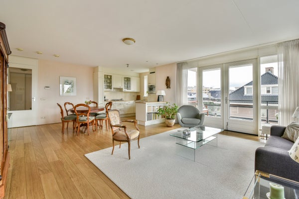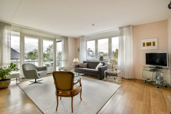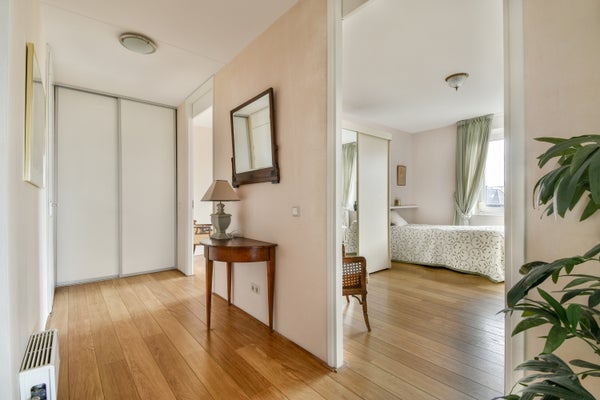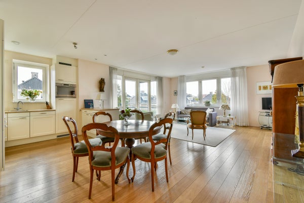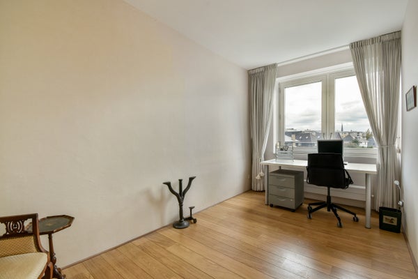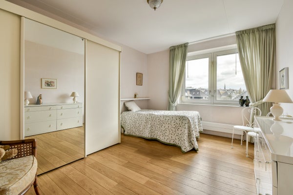 - De portiekflat heeft een woonoppervlakte van 105 m² en beschikt over 3 kamers, waarvan 2 slaapkamers;