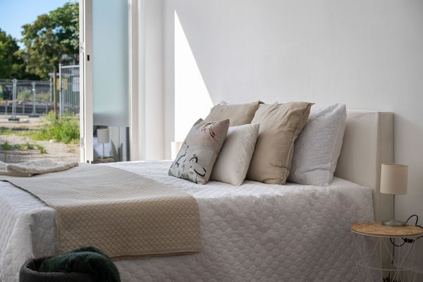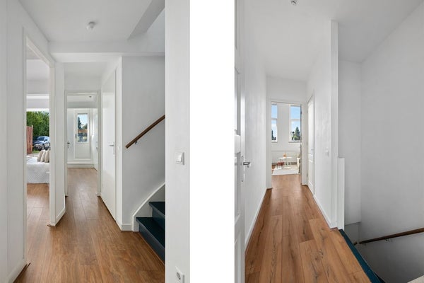 Een verdieping lager ontdek je de verrassende extra’s van dit appartement. Hier zijn twee slaapkamers en een extra kamer te vinden. De grootste slaapkamer biedt volop ruimte en direct toegang tot de tuin. De derde, wat kleinere kamer, leent zich perfect als baby- of kinderkamer, een thuiswerkplek of zelfs een walk-in closet. De moderne badkamer is voorzien van een douche, wastafel en aansluitingen voor witgoed. Daarnaast is er een separaat toilet.