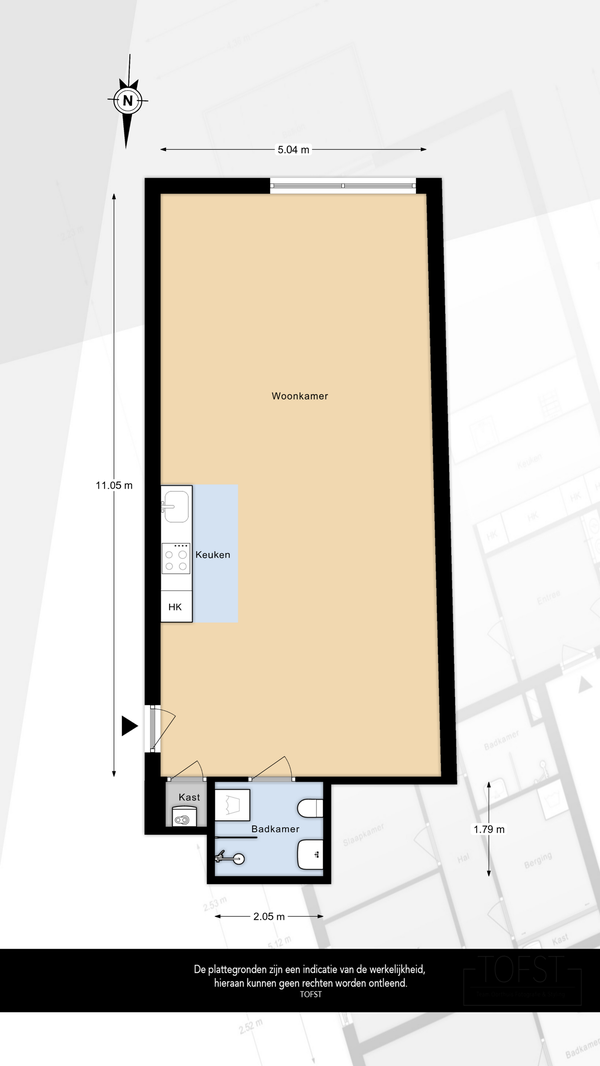 - De benedenwoning heeft een woonoppervlakte van 68 m² en beschikt over 1 kamer, waarvan 1 slaapkamer;