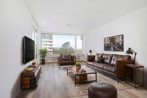 - De galerijflat heeft een woonoppervlakte van 93 m² en beschikt over 5 kamers, waarvan 4 slaapkamers;