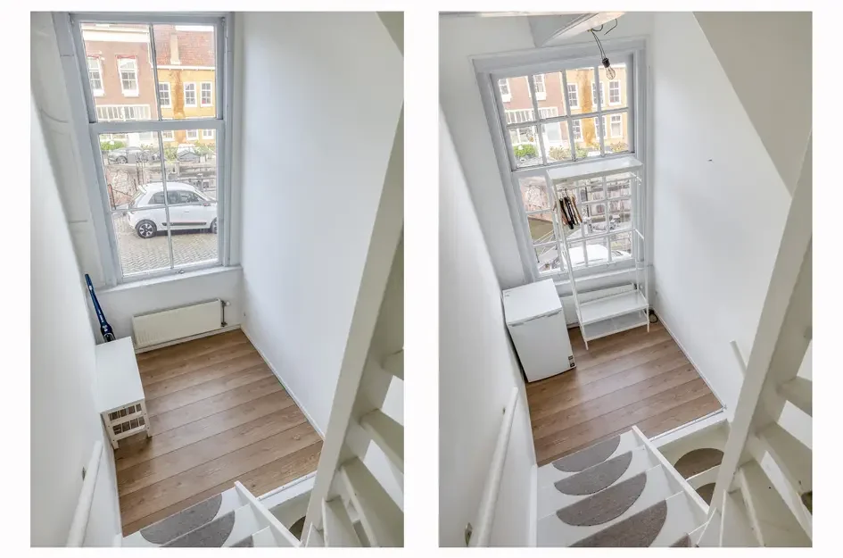 Gelegen in het centrum van Schiedam, biedt deze maisonnette woning zowel comfort als stijl. De woning is keurig afgewerkt en licht dankzij de grote raampartijen, die een panoramisch uitzicht bieden. De entree is bereikbaar via een trappetje, met toegang tot een hal en een tussenverdieping. Op de eerste verdieping bevindt zich de woonkamer met open keuken, uitgerust met een spoelbak, inductiekookplaat en magnetron. De tweede verdieping heeft een slaapkamer met houten balken en dakramen, naast de badkamer met douche en wastafel. De woning dateert uit 1750 en heeft een inhoud van 284m³. Verwarming gebeurt via een cv-combiketel. De woonoppervlakte bedraagt 77 m² en bestaat uit twee lagen, met betaald parkeren in de omgeving.