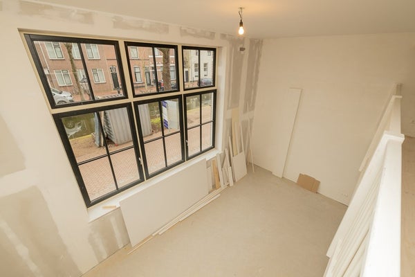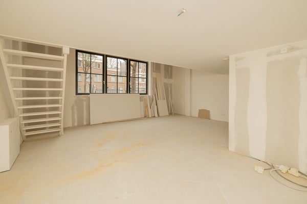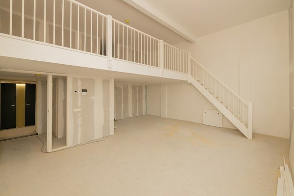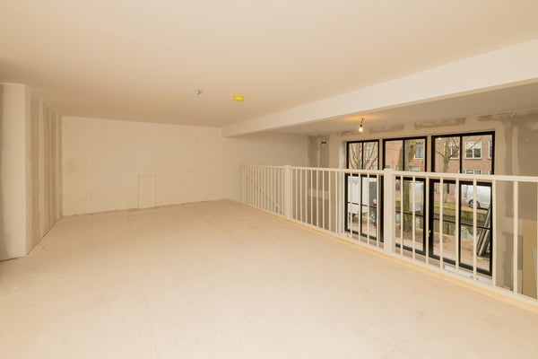 U komt binnen in de hal in, hier bevinden zich de entree en het toilet. U loopt rechtdoor naar de woonkamer. Hier ziet u een mooie lichte ruimte. Links om de hoek zitten de aansluitingen voor een L-vormige keuken. Er is genoeg ruimte voor een gezellige eethoek. Aangrenzend de woonkamer. Een mooie lichte ruimte voor uw bankstel, kasten. Als u naar buiten kijkt ziet u door de grote ramen de oude gracht. Wat een rust! En wat een lichtval! Dan loopt u naar de voorkant van de woning en kijkt u naar boven. Hoe leuk! Een vide! En wat een ruimte geeft dit. Daarnaast ziet u de aangrenzende trap op naar boven.