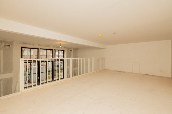 Boven aangekomen wordt u verrast door de ruimte, u loopt hier direct de slaapkamer in. Door de slaapkamer heen komt u uit in nog een extra kamer. Misschien een extra slaapkamer, of een mooie walking closet? Rechts is een casco badkamer en daarnaast toegang naar de cv-ruimte.