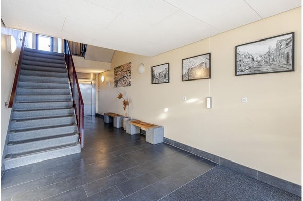- De galerijflat heeft een woonoppervlakte van 104 m² en beschikt over 3 kamers, waarvan 2 slaapkamers;