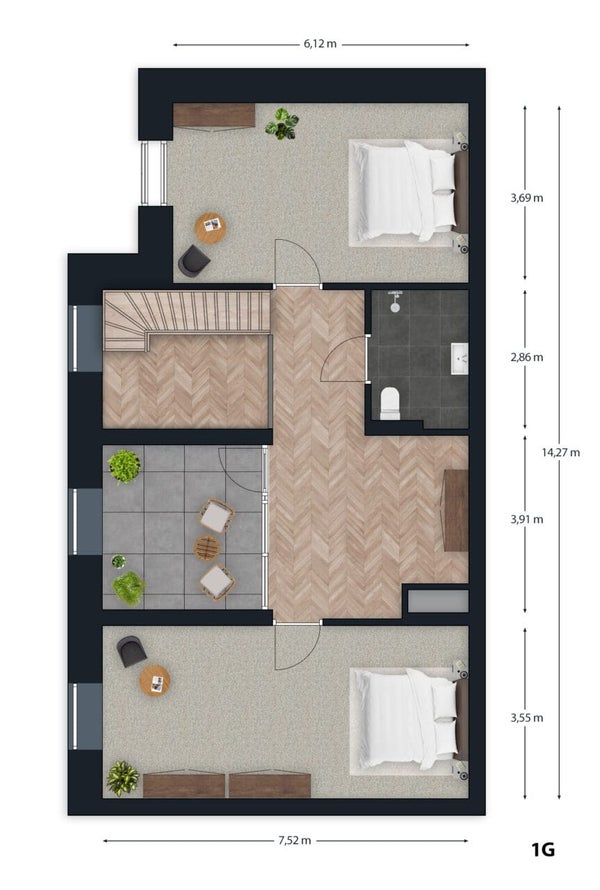 - De galerijflat heeft een woonoppervlakte van 149 m² en beschikt over 3 kamers, waarvan 2 slaapkamers;
