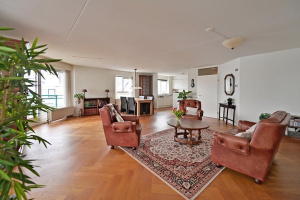 - De galerijflat heeft een woonoppervlakte van 106 m² en beschikt over 3 kamers, waarvan 2 slaapkamers;