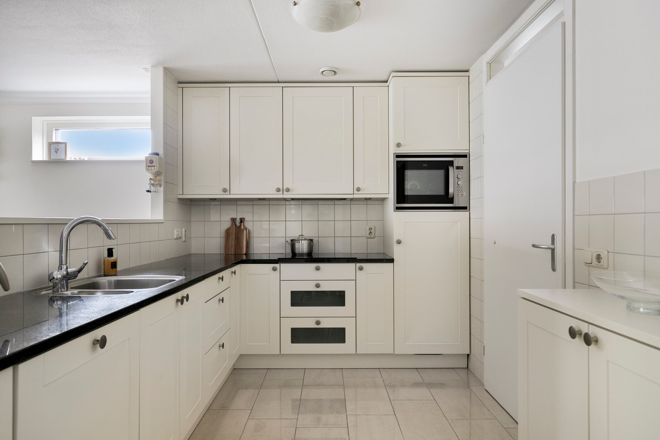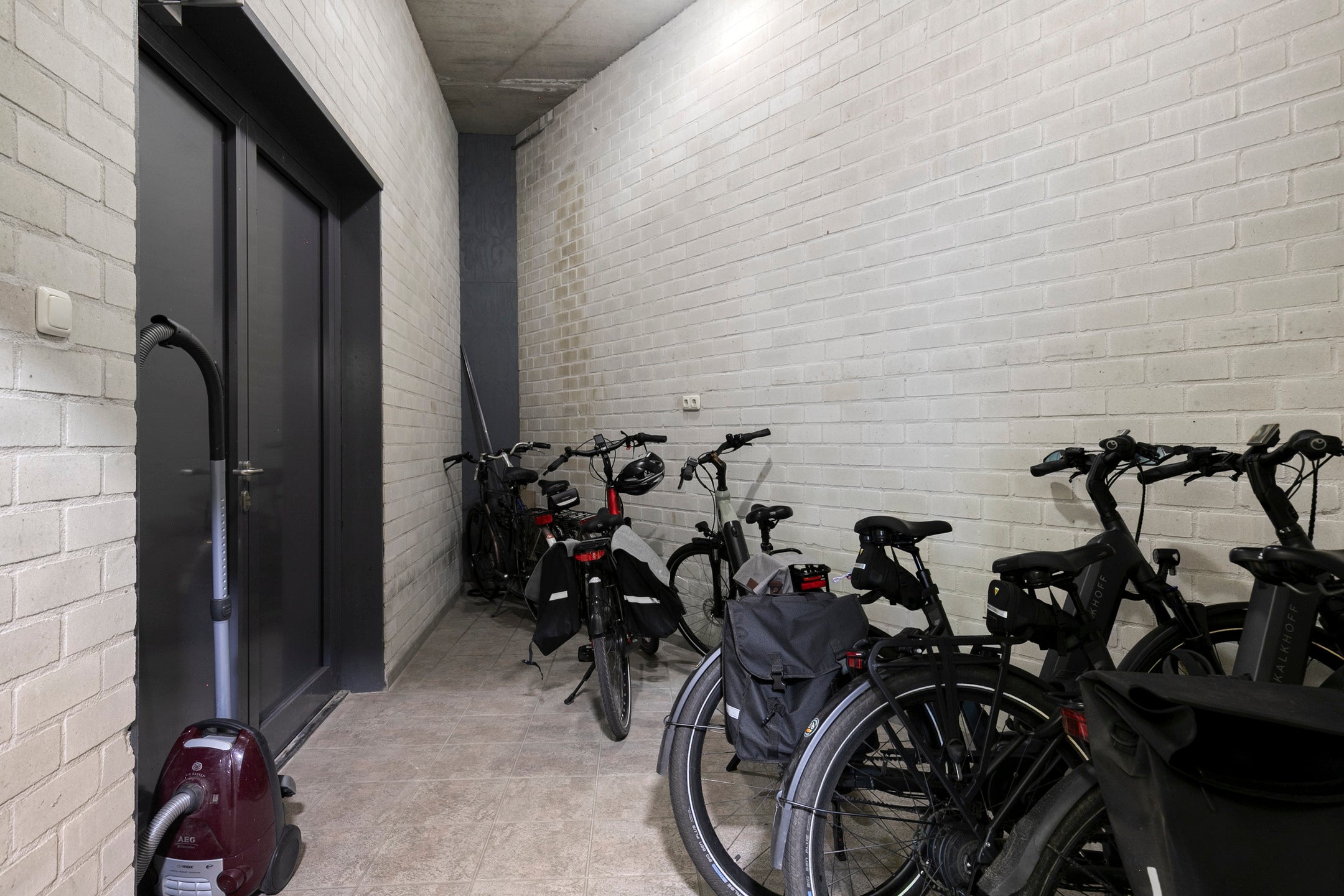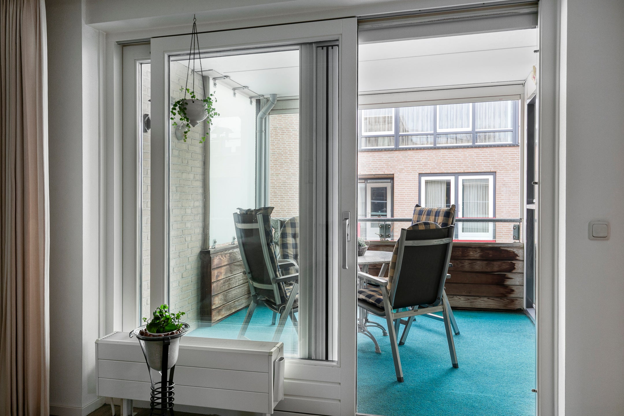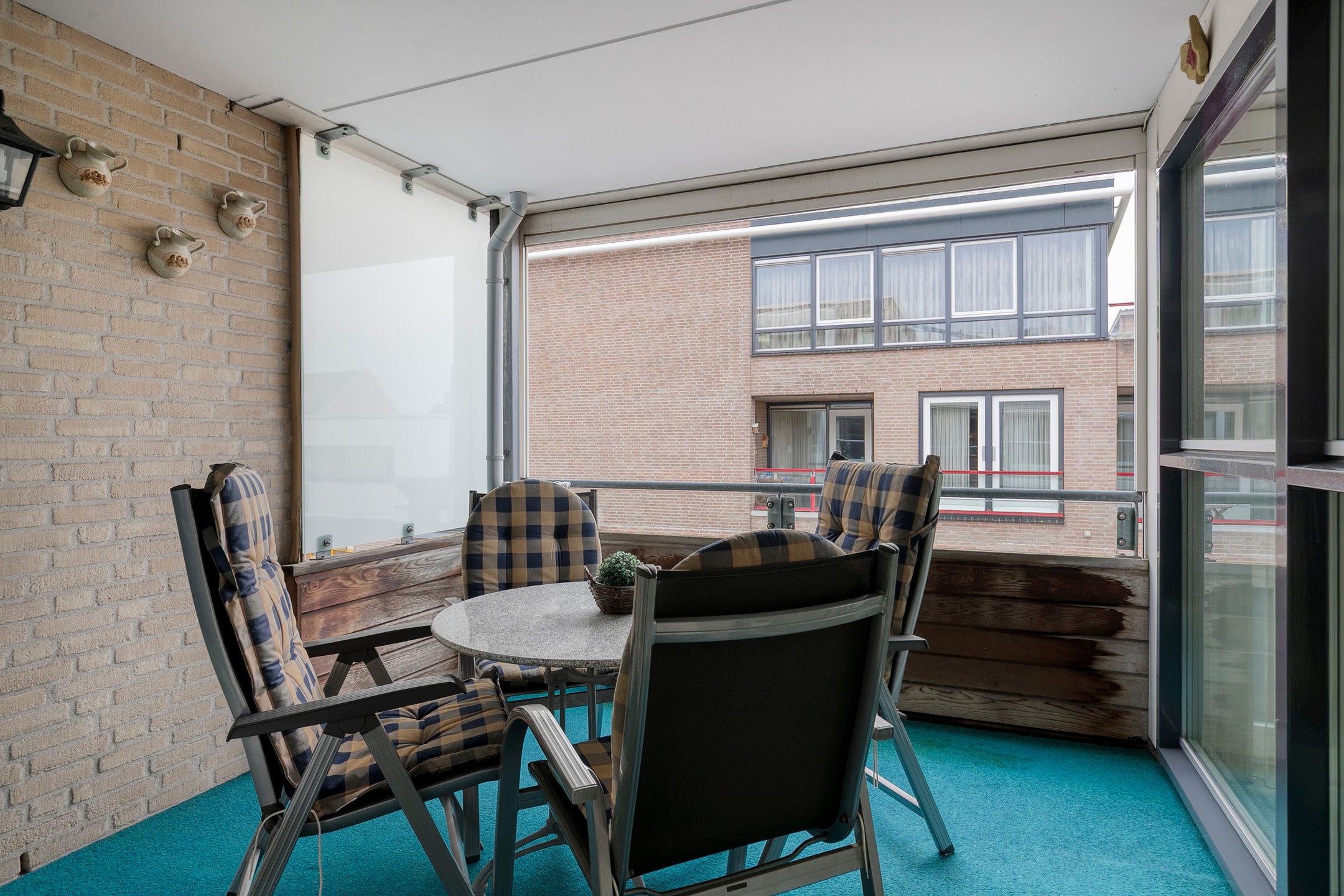 Het appartement beschikt over een royale, lichte woonkamer met plek voor een grote zithoek en eettafel. De nette keuken is uitgerust met alle benodigde apparatuur en er zijn twee slaapkamers aan de achterzijde, waarvan één met ingebouwde kasten. Een volledig betegelde badkamer met dubbele wastafel en douchecabine zorgt voor comfort. Bovendien zijn er een praktisch balkon aan de voorzijde en een verrassend ruim privéterras aan de achterzijde. Het complex heeft een lift en een gezamenlijke fietsenberging.