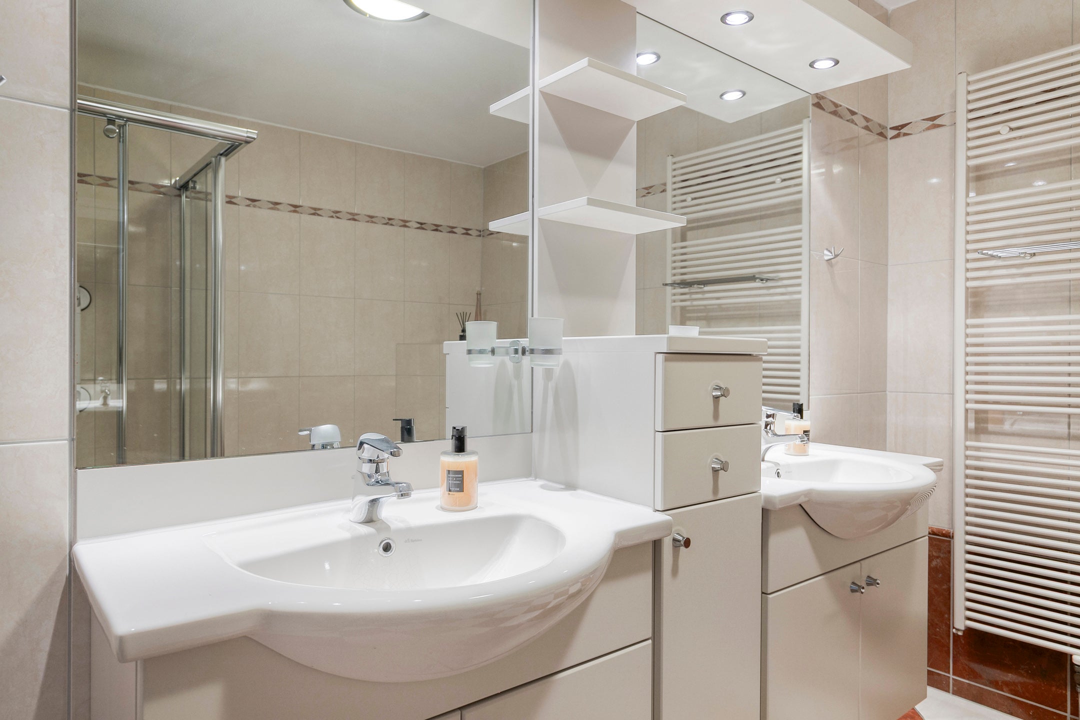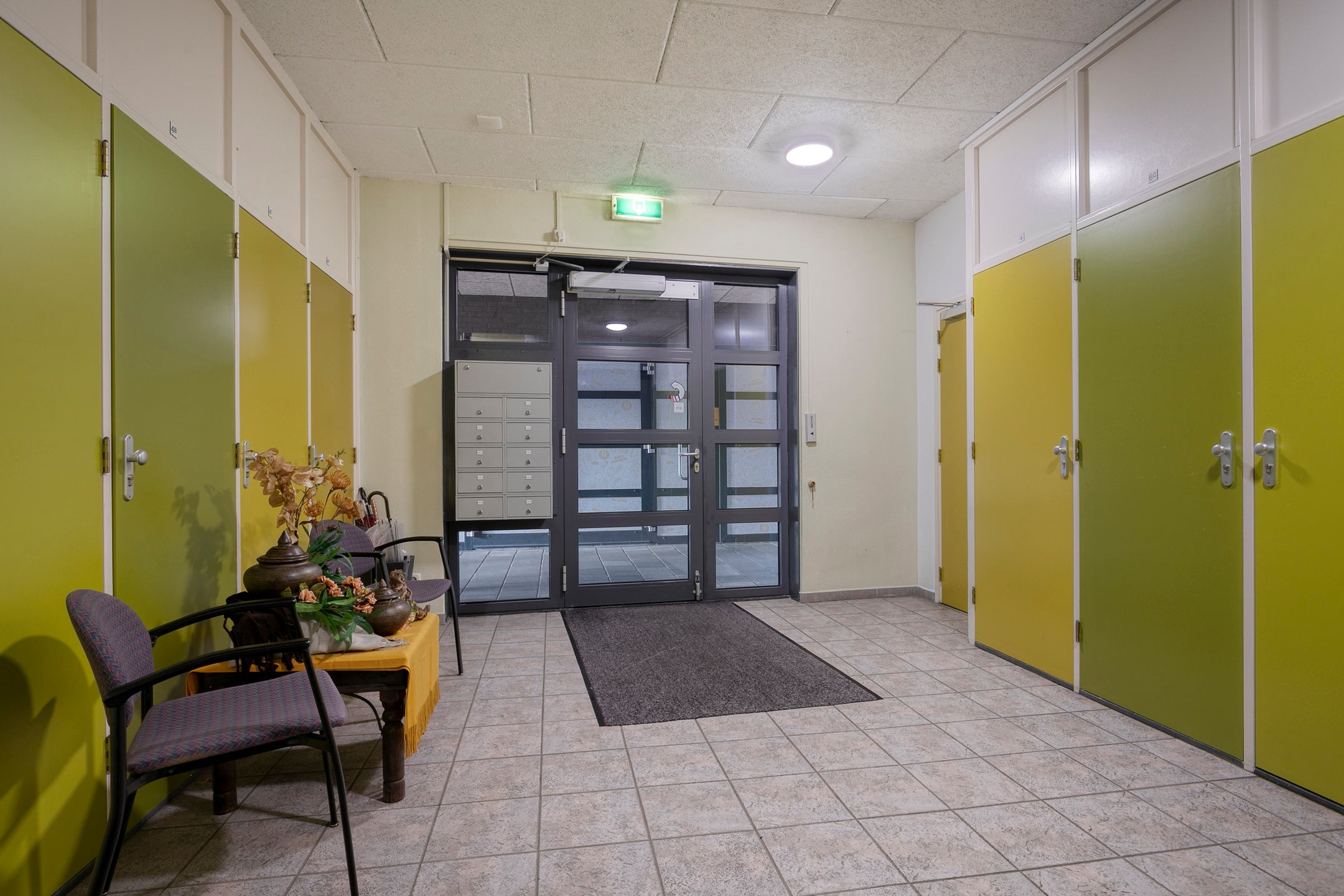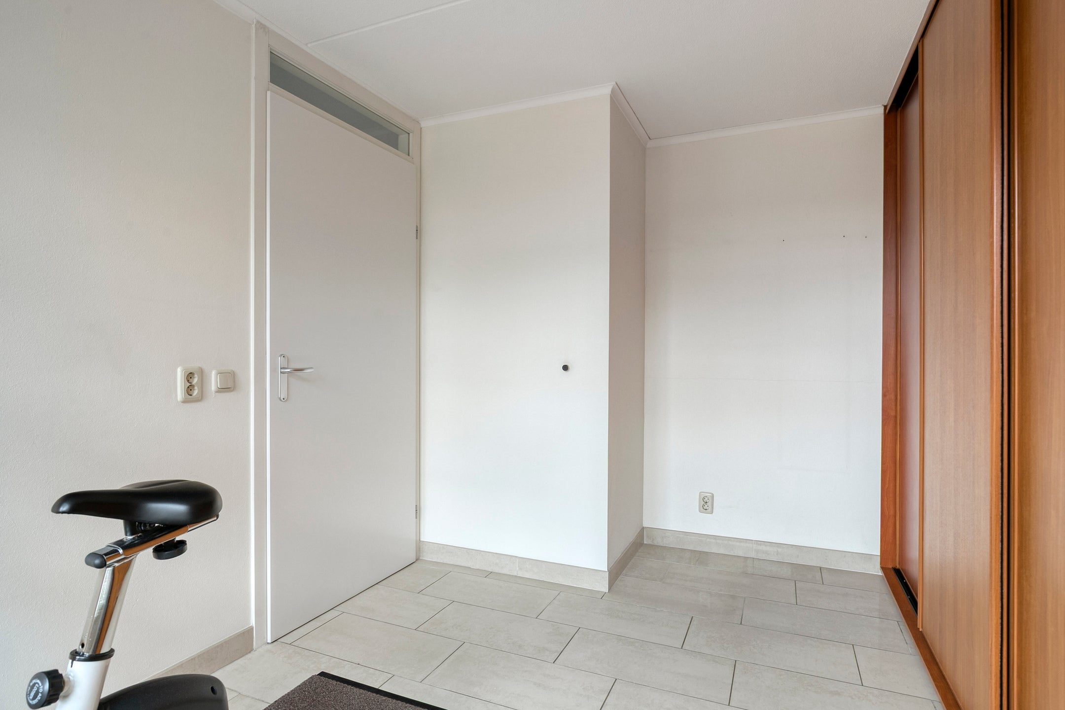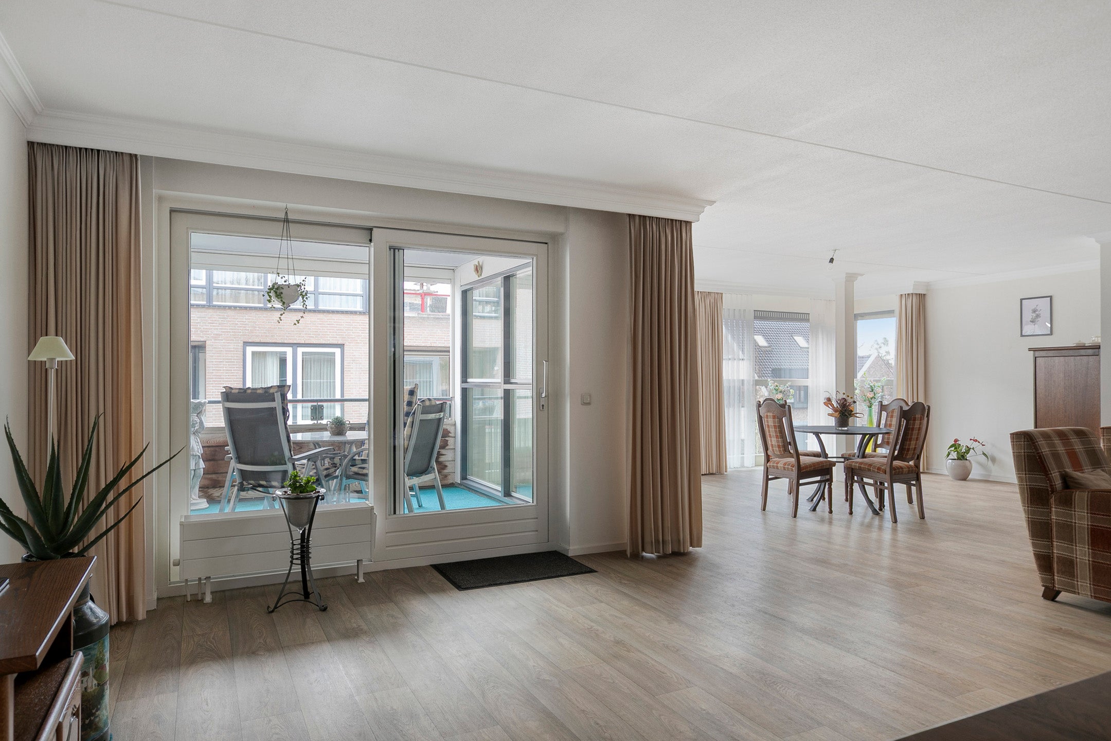 Het appartement beschikt over een royale, lichte woonkamer met plek voor een grote zithoek en eettafel. De nette keuken is uitgerust met alle benodigde apparatuur en er zijn twee slaapkamers aan de achterzijde, waarvan één met ingebouwde kasten. Een volledig betegelde badkamer met dubbele wastafel en douchecabine zorgt voor comfort. Bovendien zijn er een praktisch balkon aan de voorzijde en een verrassend ruim privéterras aan de achterzijde. Het complex heeft een lift en een gezamenlijke fietsenberging.