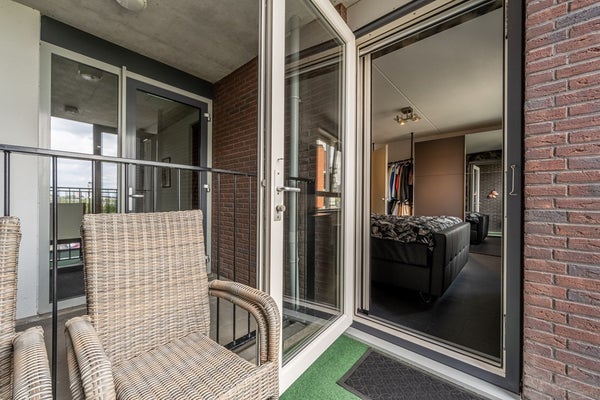 - Twee balkons, waarvan één balkon volledig kan worden afgesloten door de glazen panelen en gelegen op het Zuiden;